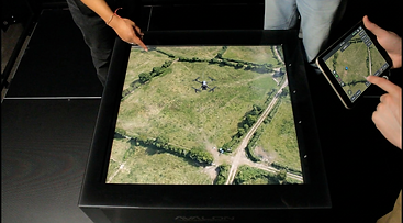 The Mixed Emerging Technology Integration Lab collaborated with the Oak Ridge Enhanced Technology and Training Center to integrate 3D holographic objects and manipulate them on a NOVAC holographic display table from Avalon Holographics using haptic gloves. The holographic display can render various 3D environments, such as tabletop military exercises, natural disasters, and other geospatial applications. The platform can be extended to simulations or strategic sandbox directives to help plan and train personnel, with the haptic gloves being used to manipulate objects and actors within a focused environment, facilitating multimodal interaction with the holographic display.